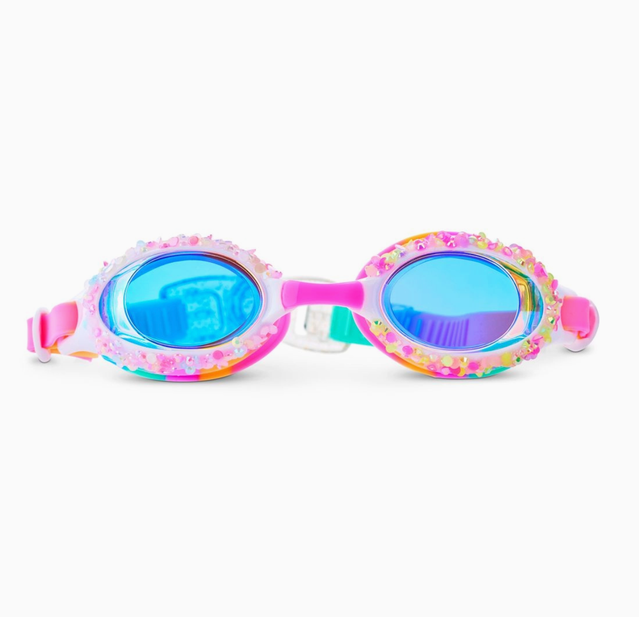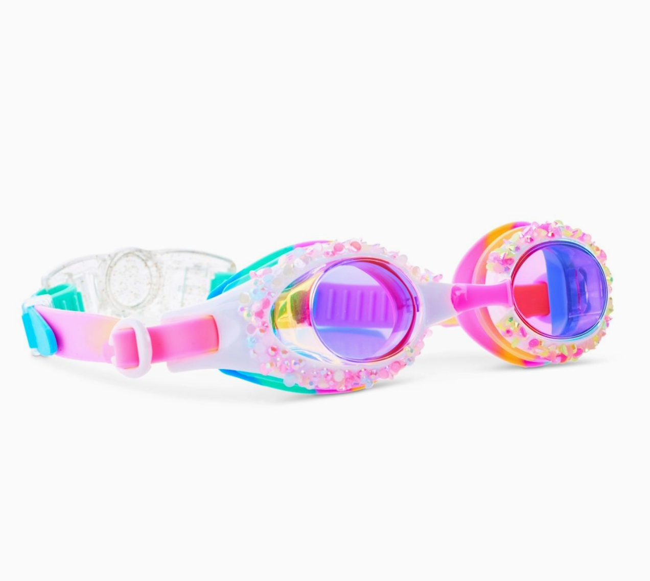 Try a scoop of Bling2o's newest flavor: Sparkle Sherbet! Gelato Ice Kids’ Swim Goggles are cool, colorful, and the perfect ratio of sparkle to sweet. Designed for swimmers ages 3 and up, this traditional-style goggle shines with crushed rainbow rhinestones around the lens and a swirled sherbet colorway that melts into magic. No need to trade style for function—these goggles are made for real swim days. With anti-fog lenses, 100% UV protection, a latex-free fit, and a back clip for quick changes (no hair pulling here), Gelato Ice brings the sweet without the stress.