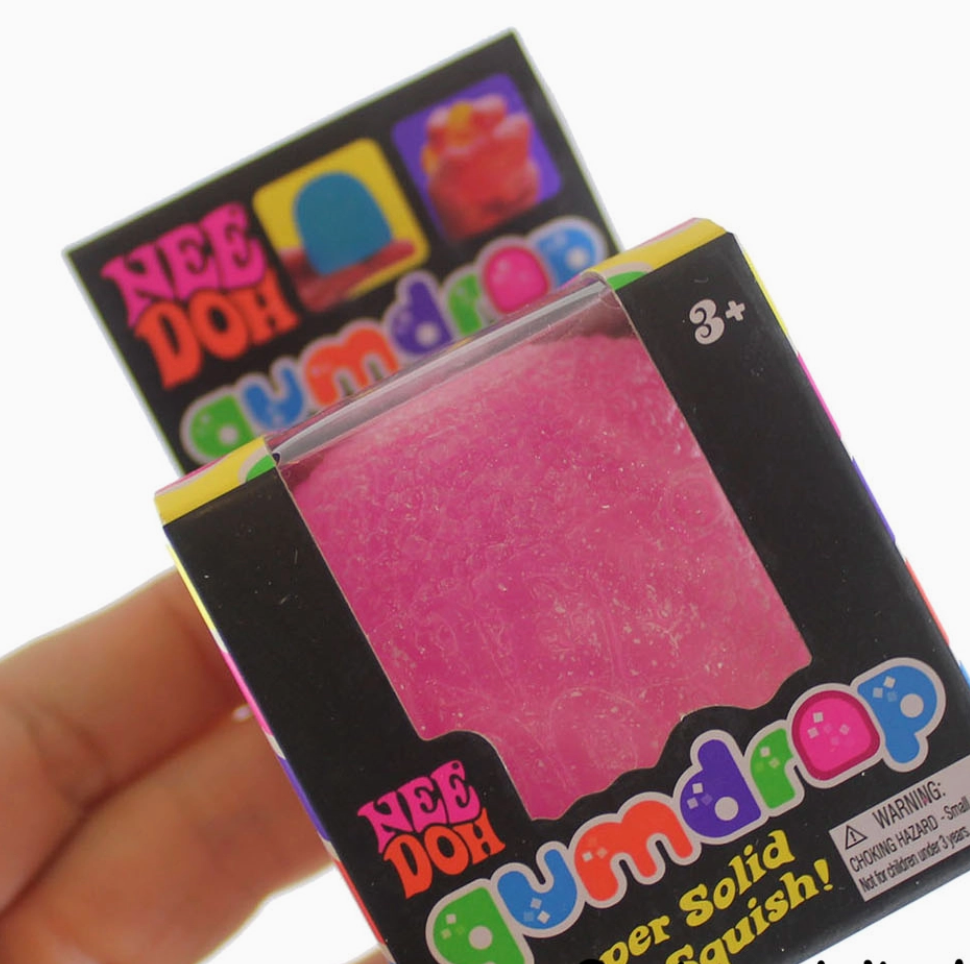 Nee Doh got it right with this one. Not only is it filled with the softest most amazing filling, but it is in a cube shape! This is a very fun stress toy that is not only calming, but it also helps build hand and finger muscles and bilateral coordination. It is beyond amazing and has a super soft dough feel. You can poke and pinch it and it will retain its shape, then slowly ooze back into a cube just like a slow rise squishy would. The gumdrop ball is about 2.25" when it is in the gumdrop shape, but can be stretched out! This is very calming because it has a very silky soft feel, and you can pull and indent it multiple ways. I like it because you can turn it and pinch it just like you did in elementary school when you made pinch pots with clay.