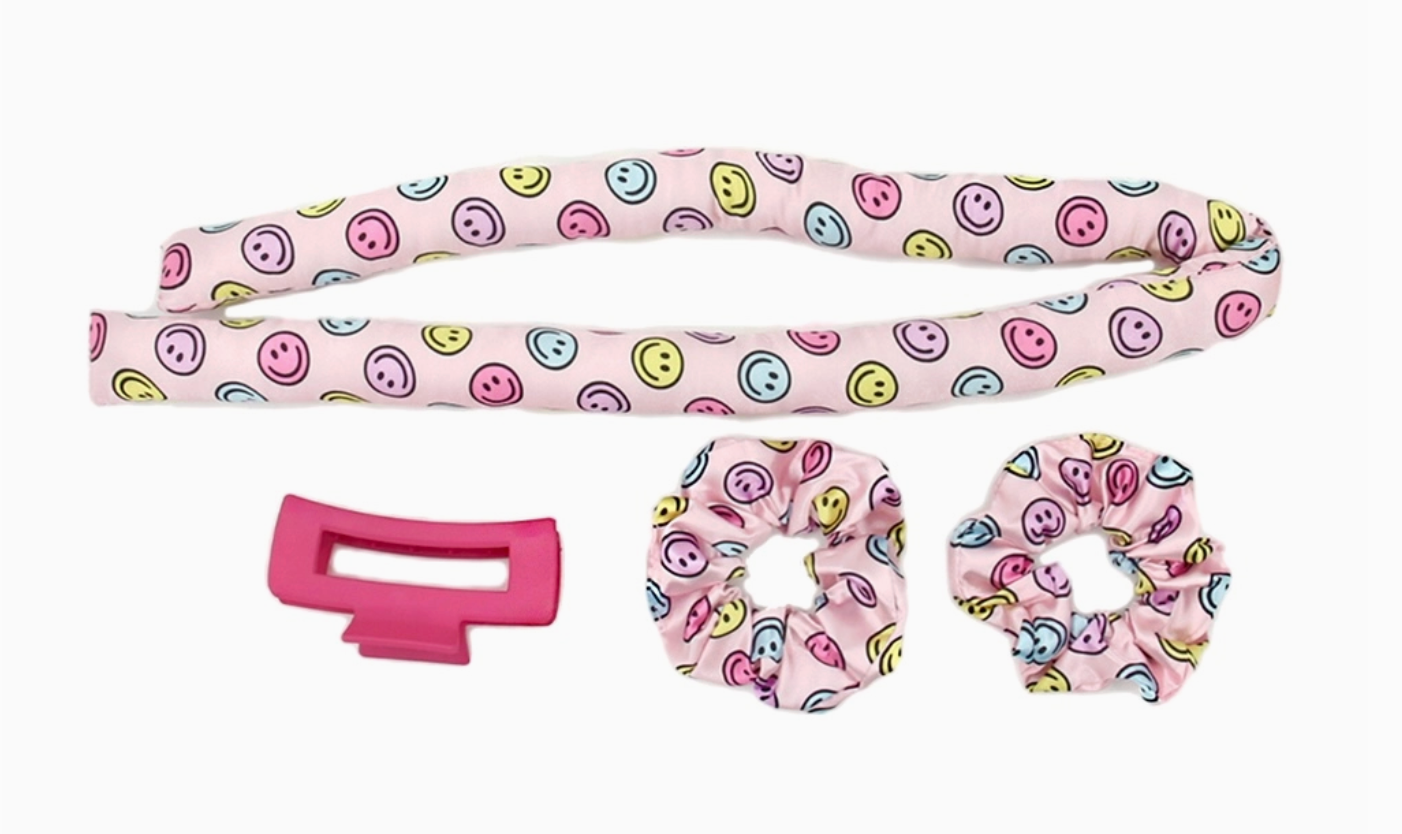 Smiley Satin Heatless Curling Curler Rod Set with Scrunchies