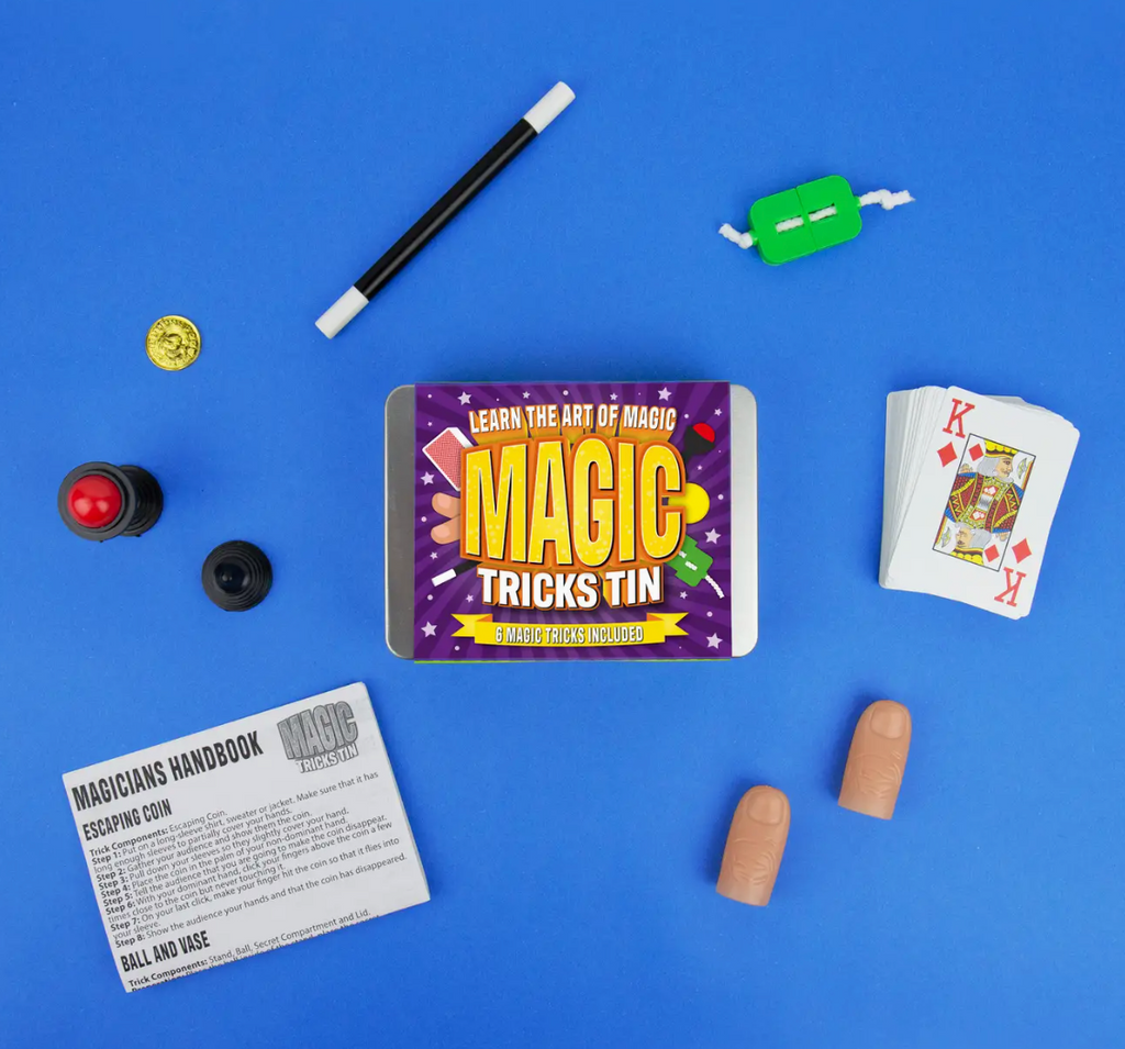 Magic Tricks Tin by Gift Republic: Wow all your friends with this Magic Tricks Tin. It contains everything you need to get started as an amateur magician! Make sure you get your hands on it soon or poof it's gone. Designed in house at Gift Republic facilities in the United Kingdom.