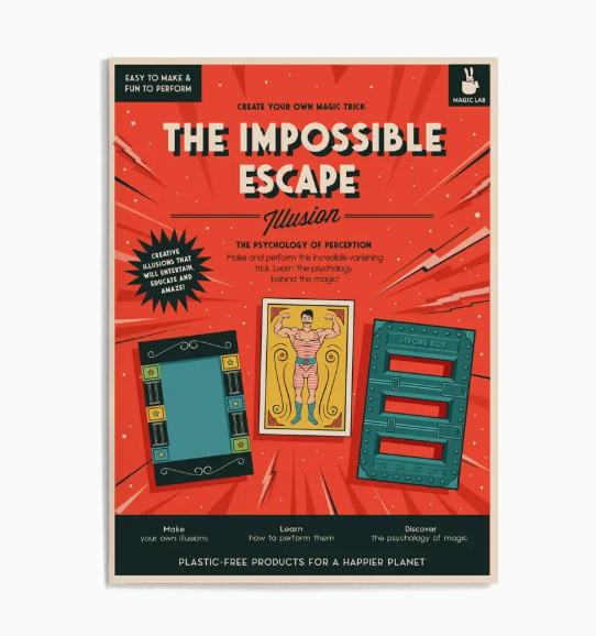 The Impossible Escape by Clockwork Soldier USA: The psychology of perception. Make the magician vanish and reappear in this seemingly impossible escape illusion! Flummox your astonished audience with this famous trick. Clockwork Soldier and the world-renowned MAGIC LAB are bridging the gap between craft, magic and science. Easy-to-build kits that delve deep into the science and psychology behind the magic. Amaze your friends with an original performance, created by professional magicians.