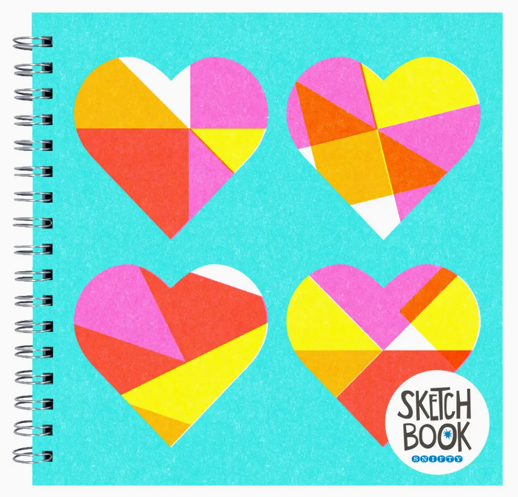 Quilted Hearts Sketchbook by SNIFTY: This beautifully illustrated sketchbooks makes the perfect pair with gel pens or markers. 45 perforated pages, 120 GSM acid free paper spiral bound square sketchbook. 9" x 9"
