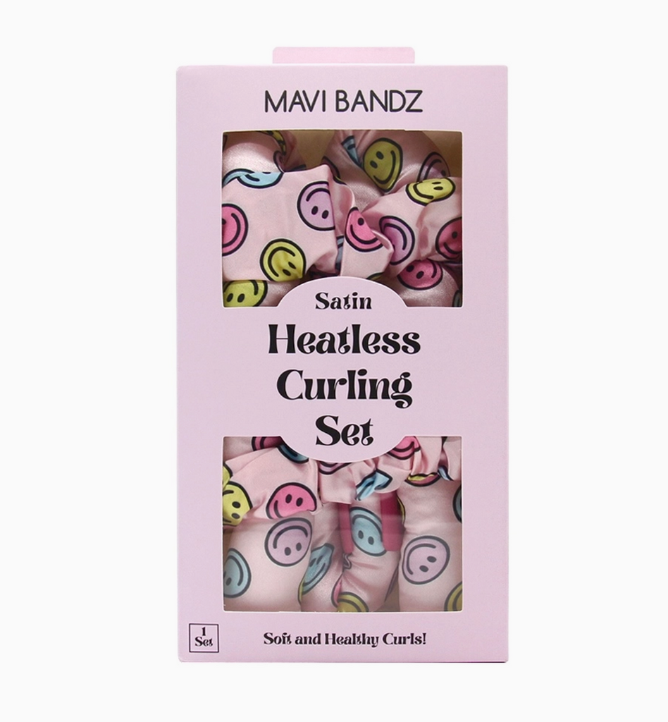 Smiley Satin Heatless Curling Setby Mavi Bandz: This satin curling rod set is the best way to get beautiful, wavy curls - with no heat damage! The rods and scrunchies are made of the softest satin to protect your hair and eliminate breakage. The set includes a 34" satin rod, two scrunchies, and a hair claw to secure your hair! This is all the rage!