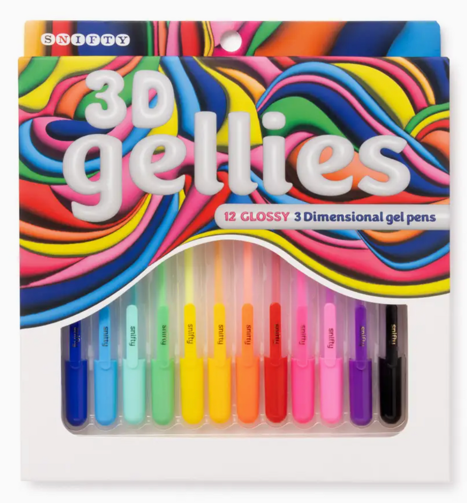 3D Gellies Gell Pens by SNIFTY: Set of 12 Dimensional gel pens. Create a raised glossy texture on almost anything! Decorate non-porous surfaces: Like glass, metal, ceramic, plastic phone covers, windows and more...