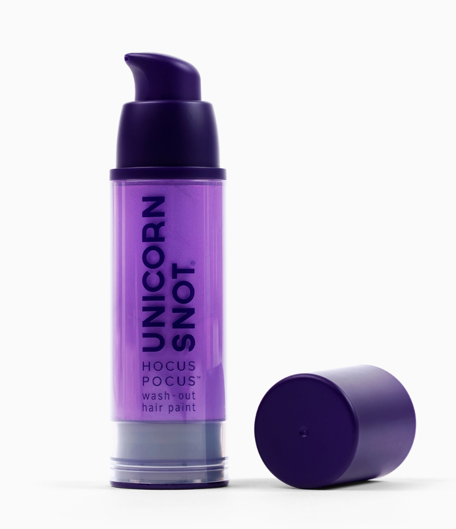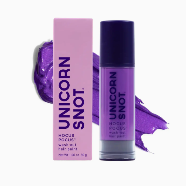 Hocus Pocus Purple-Zap Hair Paint by Unicorn Snot: Transform your look with Hocus Pocus Wash-Out Hair Paint! This water-based formula offers vibrant, shimmery color that’s easy to apply and washes out in a single rinse. Perfect for parties, festivals, or just trying something new.