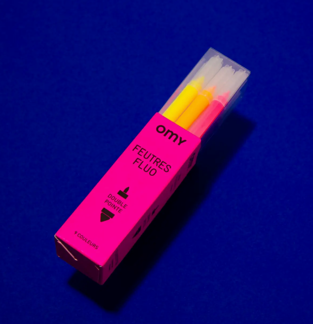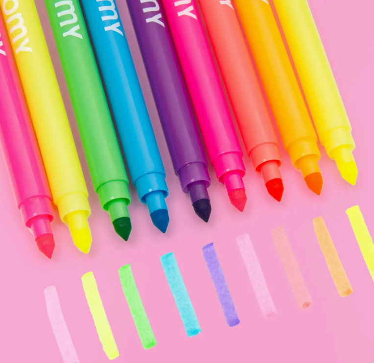 Neon Markers by OMY: 9 Neon colors : Neon-Yellow ( x2) , Neon-orange, Neon-green, Neon-purple, Neon blue, Neo-pink (x2) Double-tipped : One fine and one Large.