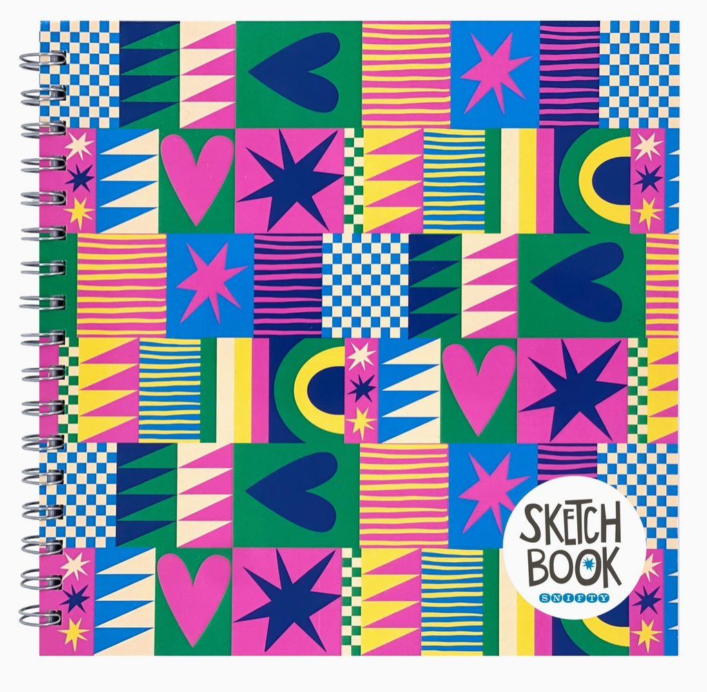 Geo Love Sketchbook by SNIFTY: This beautifully illustrated sketchbooks makes the perfect pair with gel pens or markers. 45 perforated pages, 120 GSM acid free paper spiral bound square sketchbook. 9" x 9"