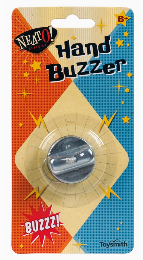 Neato! Hand Buzzer by Toysmith: A popular practical joke toy, this hilarious Hand Buzzer prank toy from Neato! is tiny enough to hide in even the smallest of hands, which makes it perfect for early-age practical jokers. Measures 1.5 inches in diameter and is constructed with high-quality, durable metal. Just hold the buzzer in hand while giving a shake. It’ll activate with pressure.