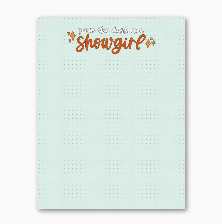 From the Desk of a Showgirl Notepad by Kyn You Believe It: Put on the glitter, grab your pen, and get to work! This notepad is perfect for jotting down daily to-dos, grand ideas, or your run of show for the day. if you could see it IRL: Approximately 50 single-sided sheets, 4.25 x 5.5 inches.