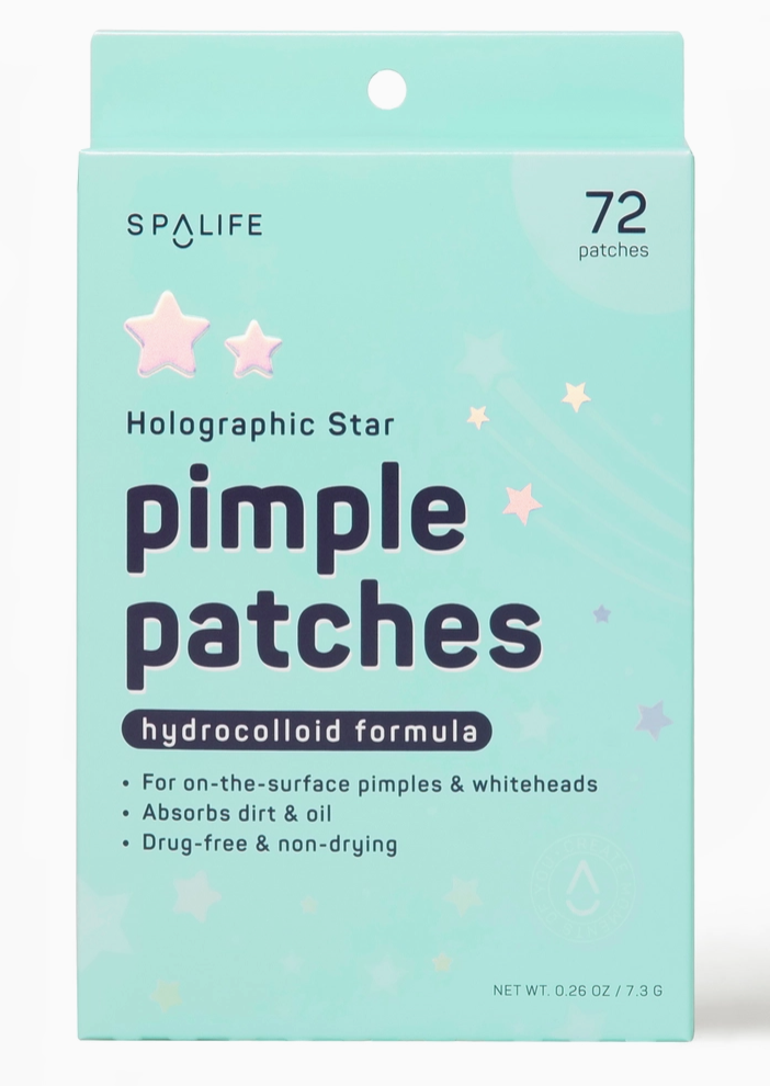 Holographic Star Hydrocolloid Pimple Patches by My Spa Life: Keep it cute with assorted hydrocolloid pimple patches to suit your vibe! Shine extra brightly with these holographic hydrocolloid patches! Shaped like stars, they spot treat on-the-surface pimples and whiteheads, speeding up healing time without over-drying red, irritated skin. Why We Love it: Visibly absorbs impurities: Absorbs liquids & debris, shrinking spots. Protects & Heals: Shield skin while boosting comfort & confidence, helping heal red, unhappy skin. Results in 6–10 hours: See improvements overnight or in as few as 6 hours. Product benefits & features: Promotes healing, non-drying & drug-free. Fun, super-cute design.