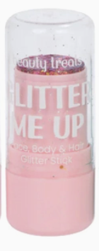 Glitter Me Up Face, Body & Hair Glitter Stick by PINEAPPLE Beauty: This versatile glitter stick is infused with a dazzling blend of shimmering pigments, glides on effortlessly to add a touch of glamour to face, body, and hair. Stick applicator makes it easy to apply on desired area.