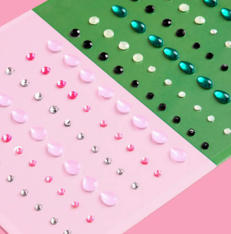 Pink and Green Witch Face Gems by xo, Fetti: Long-lasting adhesive keeps gems secure for hours - Pink and green colors add sparkle to any witchy makeup look - Reusable gems perfect for Halloween, festivals, and parties These pink and green witch face gems are the ultimate way to elevate your Halloween makeup look. Featuring a mix of iridescent pink and green crystals, they’re designed to add instant sparkle and a magical, witchy vibe to your costume. Perfect for Halloween parties, themed festivals, or cosplay, these face gems are easy to apply and stay put all night. Each gem catches the light beautifully, giving your look a bewitching shimmer that’s both playful and bold. Whether you’re channeling a glittery witch or just want to add some sparkle to your festival makeup, these gems make it effortless to stand out. Add a pop of color and magic to your face or body with these reusable gems. The combination of pink and green hues gives off major glam energy that pairs perfectly with witch, fairy, or fantasy-inspired looks. Lightweight and skin-safe, an enchanting look that sparkles under any light, these pink and green witch face gems are your new go-to accessory.