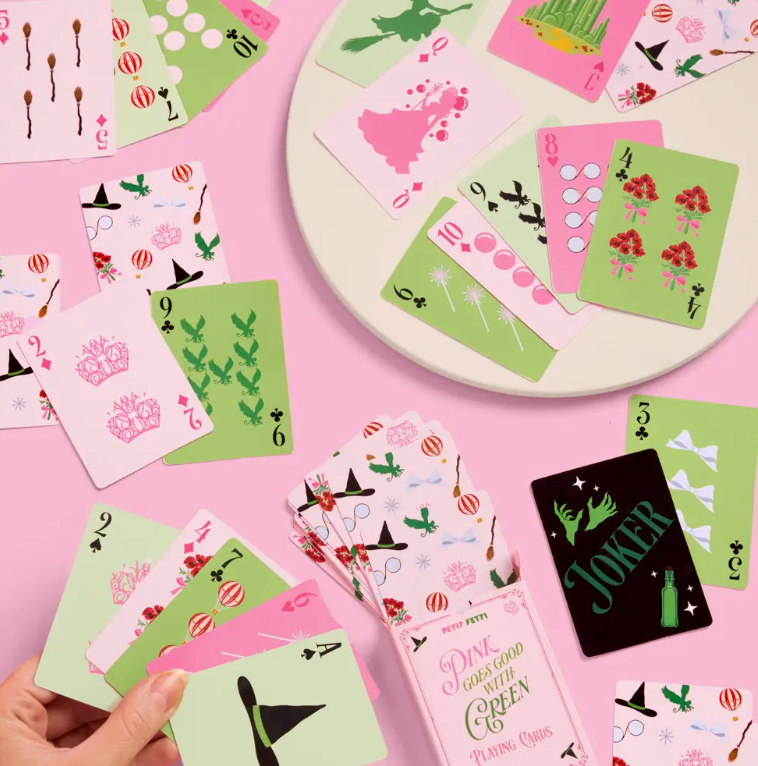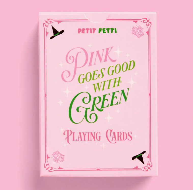 Wicked Playing Cards by xo, Fetti: Unleash your inner witch with these fun cards! Perfect for those who refuse to play by the rules. Full deck of 52 playing cards + 2 jokers Pink + green cards w. all over magical icons Cards measure 3.5" x 2.5" + come in a printed box.