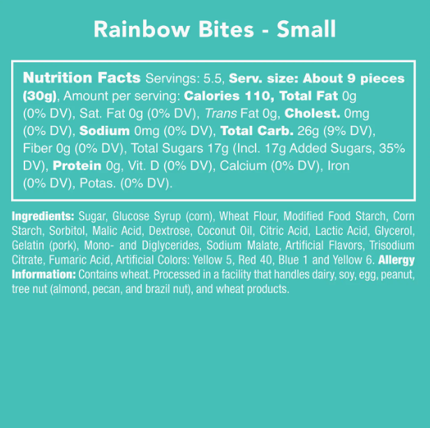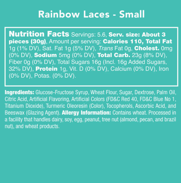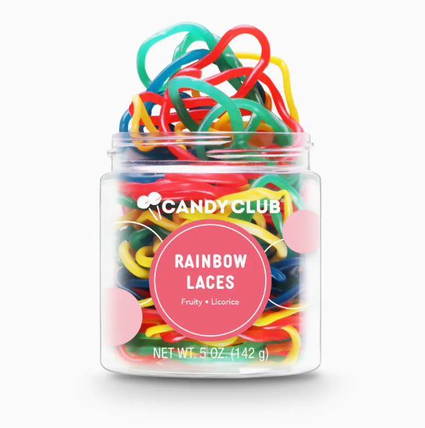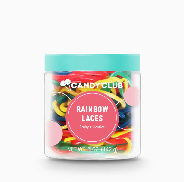 Rainbow Laces: Whether you enjoy them strand by strand or pound them by the pile, these lusciously chewy, super-fruity laces guarantee a colorful candy experience in every bite! The long rainbow laces are perfect for a cupcake or candy buffet display. Non-GMO.