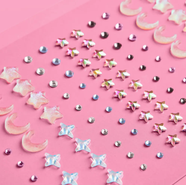Ready to sparkle like the star you are? This face gem set will add something extra for that party, holiday or special event. Gems by xo, Fetti