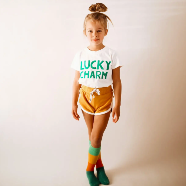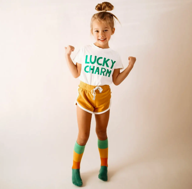An adorable tee for St. Patrick's Day and beyond by Minimalist Folk Co., Minimalist Folk Co., tee's are all hand designed to be of the highest quality. The cut, the fit, the color, the fabric, everything down to the stitching was chosen to be the very best for you and your littles. They're also all hand printed by their maker in her home studio, so the love is baked right in! Timeless exclusive designs are made to celebrate your special moments and create lasting memories during these special times. Effortless style, easy to match, made to play! WEAR • PLAY • WASH • REPEAT