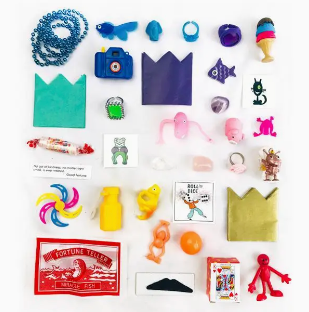 Golden Egg Surprise Ball by TOPS Malibu: Handcrafted by artisians in the USA. Celebrate the spring season with Surprize Balls®! Whether you’re hosting an Easter egg hunt, filling a basket, or simply embracing the joy of winter ending, our Surprize Balls® are a unique gift that will surely be unexpected. These Surprize Balls® pay homage to the beloved toy craze of the 1950s, just unravel the layers of gold crepe paper ribbons to reveal a treasure trove of surprises carefully tucked within. Each Surprize Ball® contains an assortment of 6 surprises. The exact contents vary by style and may include gemstones or crystals, vintage-inspired toys, whimsical charms, sweet treats, tiny crowns, temporary tattoos, confetti poppers, uplifting fortune messages, and more! TOPS Malibu is the creator of the original Surprize Ball®. They are handcrafted, making each one a personal and unique piece. Suitable for ages 3 Years and older: contains small parts.