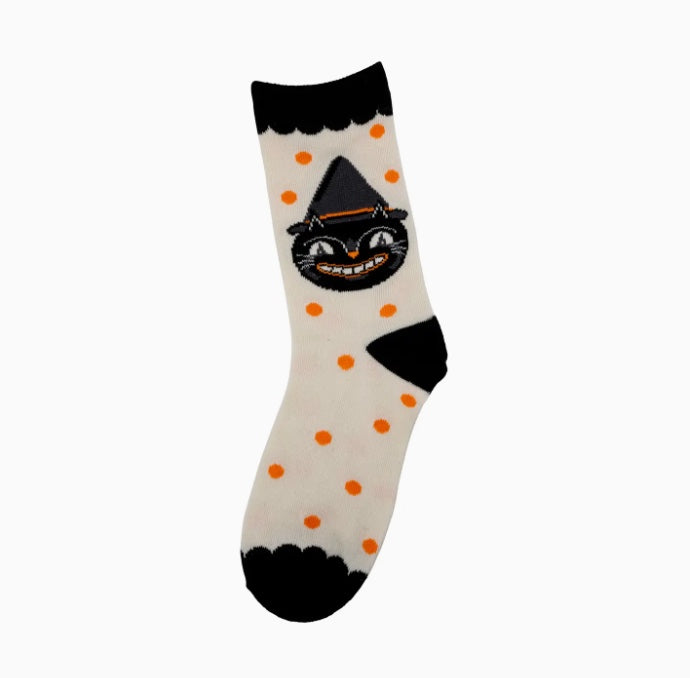 Spice up your sock game with My Mind's Eye's Vintage Cat Socks. These quirky and playful socks feature a vintage cat design and polka dot pattern. Step out in style and show off your personality with these unique socks!